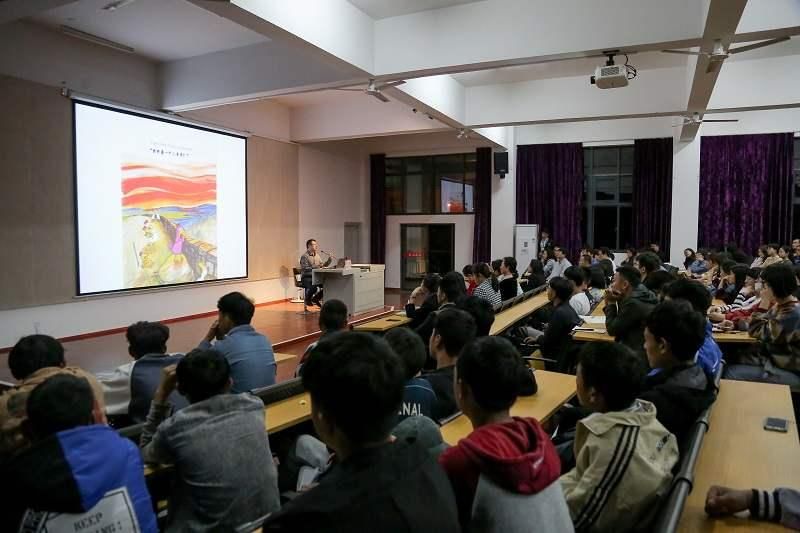 张敢教授通过介绍西方流派作家的作品中的色彩搭配、整体结构,以及作者对生活艺术的感受表达出来,向大家诠释了表现主义的美术思潮,为同学们提供了积累丰富的绘画底蕴;接着又讲述了立体艺术等抽象艺术形式主义的探索和超现实主义的幻想艺术,给人展现出不一样的表达方式。介绍过程中,张敢教授不时运用幽默的话语,引起同学们的一片欢笑声,使得本次讲座更为有趣。