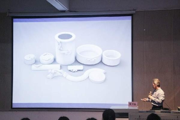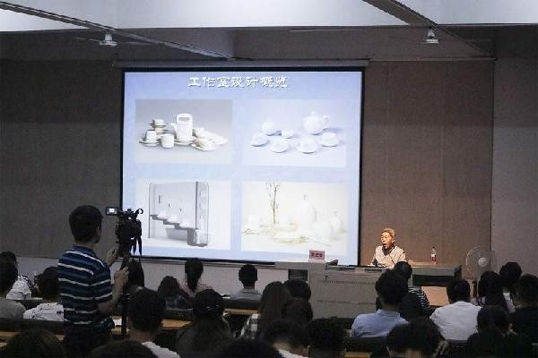 李教授还在大屏幕上展示了许多不同类型的陶艺设计,从古代传统的陶艺作品,到现代新型的陶艺技术。陶瓷艺术在造型、装饰、手法、形象上的转化演变,其呈现出的不同效果,让在座师生惊叹不止。