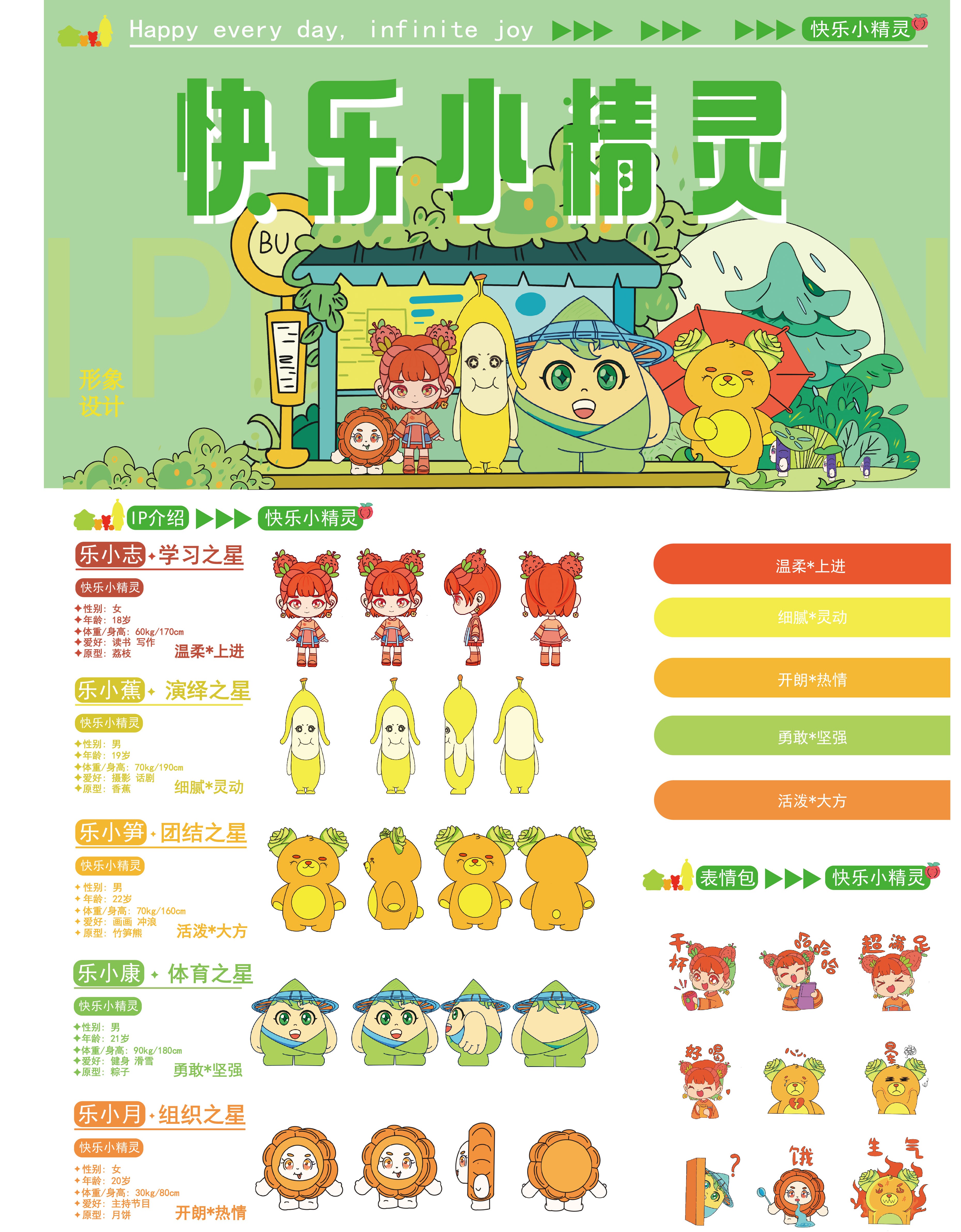 作品名:快乐小精灵IP形象设计 作者:张文浩 黄美丽