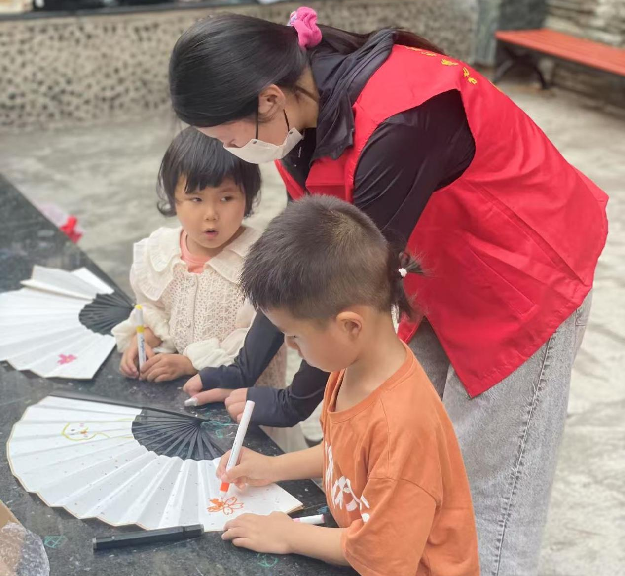 活动现场,志愿者们迅速行动起来,展现出积极向上的精神风貌。折扇手绘区,志愿者们用手中的笔帮助小朋友们在扇面上写下文明标语,深入浅出的引导小朋友们理解“为人民服务”的精神。该活动吸引众多居民驻足欣赏,更有不少居民亲自参与,在志愿者指导下体验创作乐趣。此外,还有雷锋小知识竞猜环节,题目融入了文明创建和雷锋精神的元素,鼓励居民在抢答过程中积极思考,领悟雷锋精神内涵。