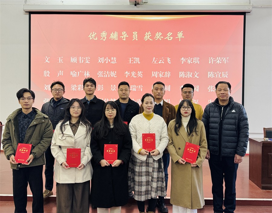 学校党委书记覃宪儒为“优秀辅导员”获得者颁发荣誉证书