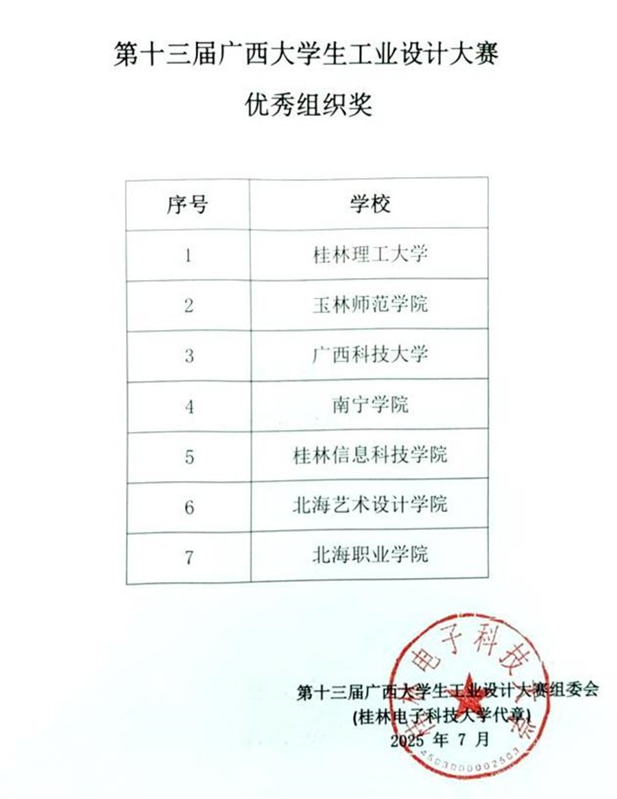 近日,第十三届广西大学生工业设计大赛圆满落幕。我校产品设计专业师生凭借出色的创意与扎实的专业功底再创佳绩,在大赛中获一等奖2项、二等奖10项、三等奖12项,优秀指导教师奖2项。学校获优秀组织奖,充分展现了学校师生的创意思维与设计实践能力。
