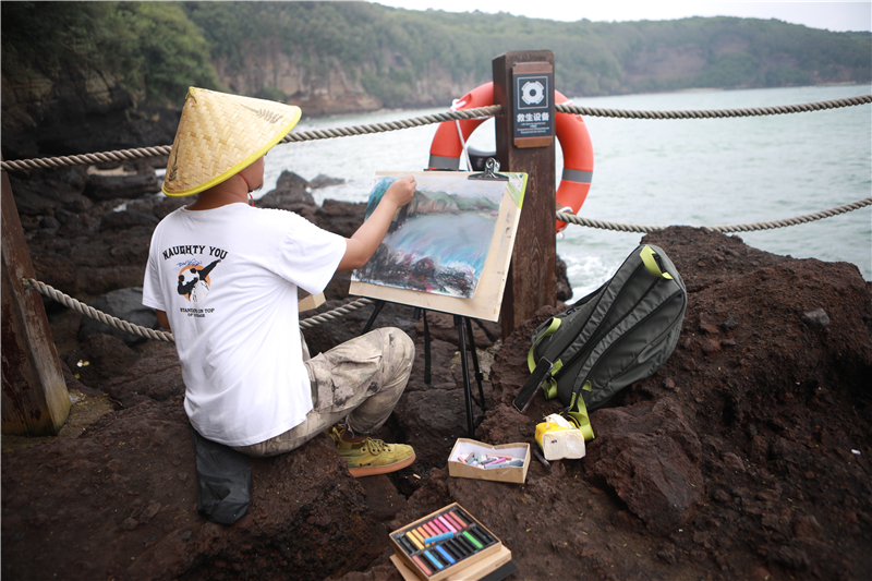 依据教学安排,北艺师生们先后到达火山口公园、码头、天主教堂进行写生实践活动与艺术创作。在各领导和教师的带领下,同学们用相机、手机共同记录下涠洲的自然美景与人文景观。与此同时,加深了同学们对涠洲岛的特色与民族风情及其历史渊源的了解与认识。也让同学们感受到艺术与自然之间的联系,从而更好的进行创作。