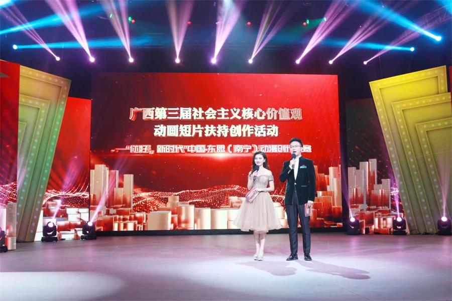 2019年12月26日下午3点,广西第三届社会主义核心价值观动画短片扶持创作活动——“你好,新时代”中国•东盟(南宁)动漫创作大赛颁奖典礼在广西广播电视台演播厅举行。自治区文化和旅游厅党组成员、副厅长赖富强自治区广播电视局党组成员、副局长朱为范等领导和嘉宾出席了颁奖典礼。