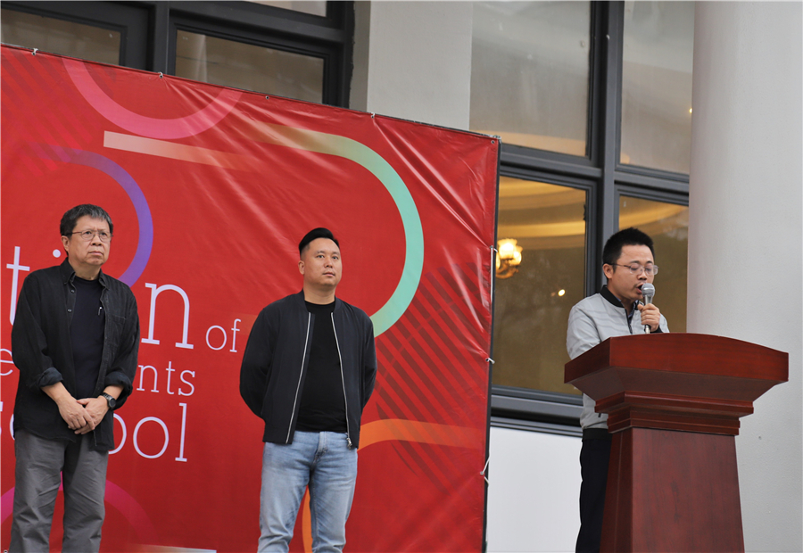 随后,绘画1701班辛文韬同学代表学生发言,他表示,通过坚持不懈的专业学习实践,取得了一些成绩;希望同学们珍惜当下,明确目标,奋勇前行。绘画1803班杨慧同学上台发言,校园写生活动令她收获颇丰,老师每晚组织的习作讲评会,让每位同学都能在学习中不断进步。