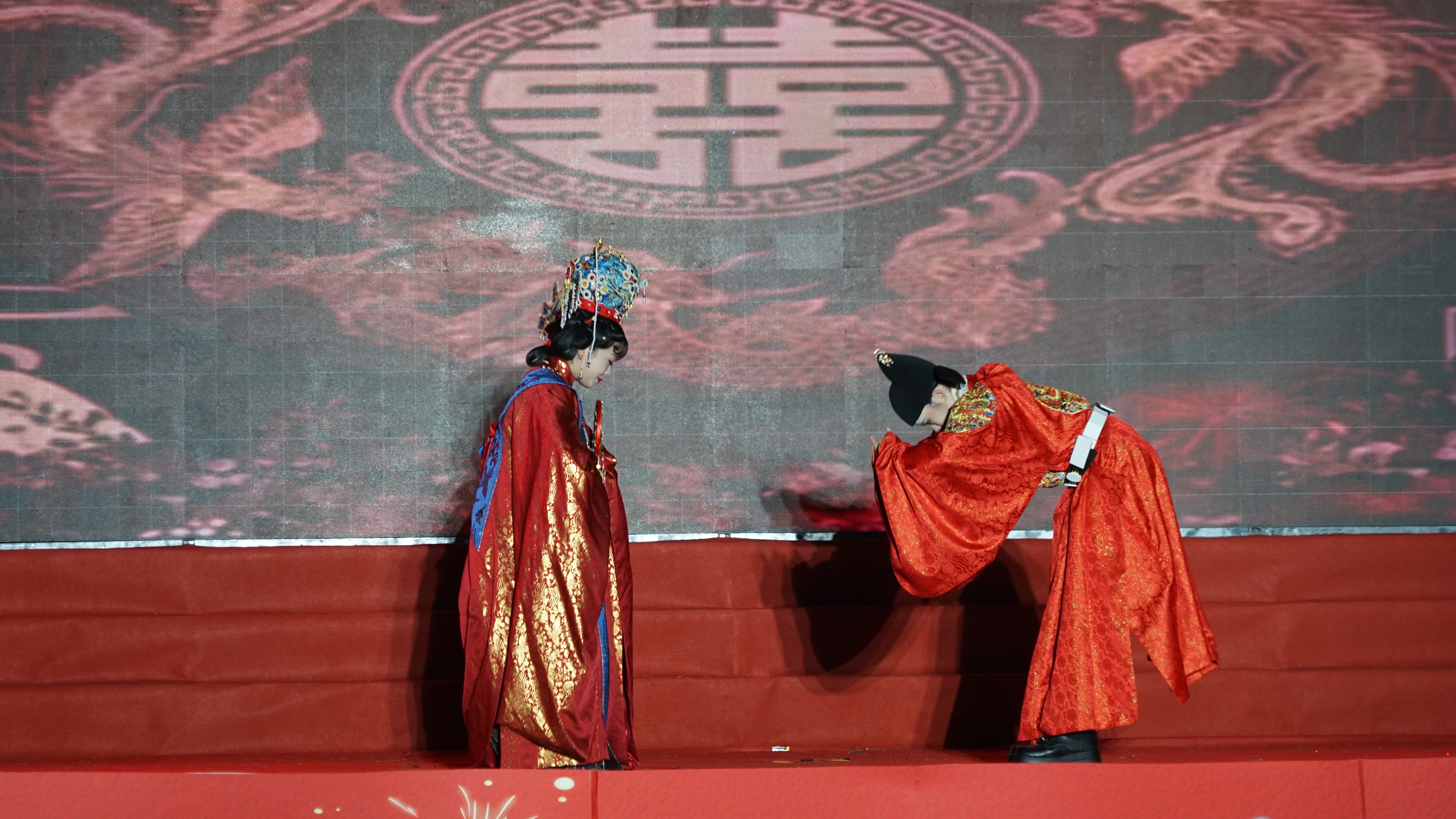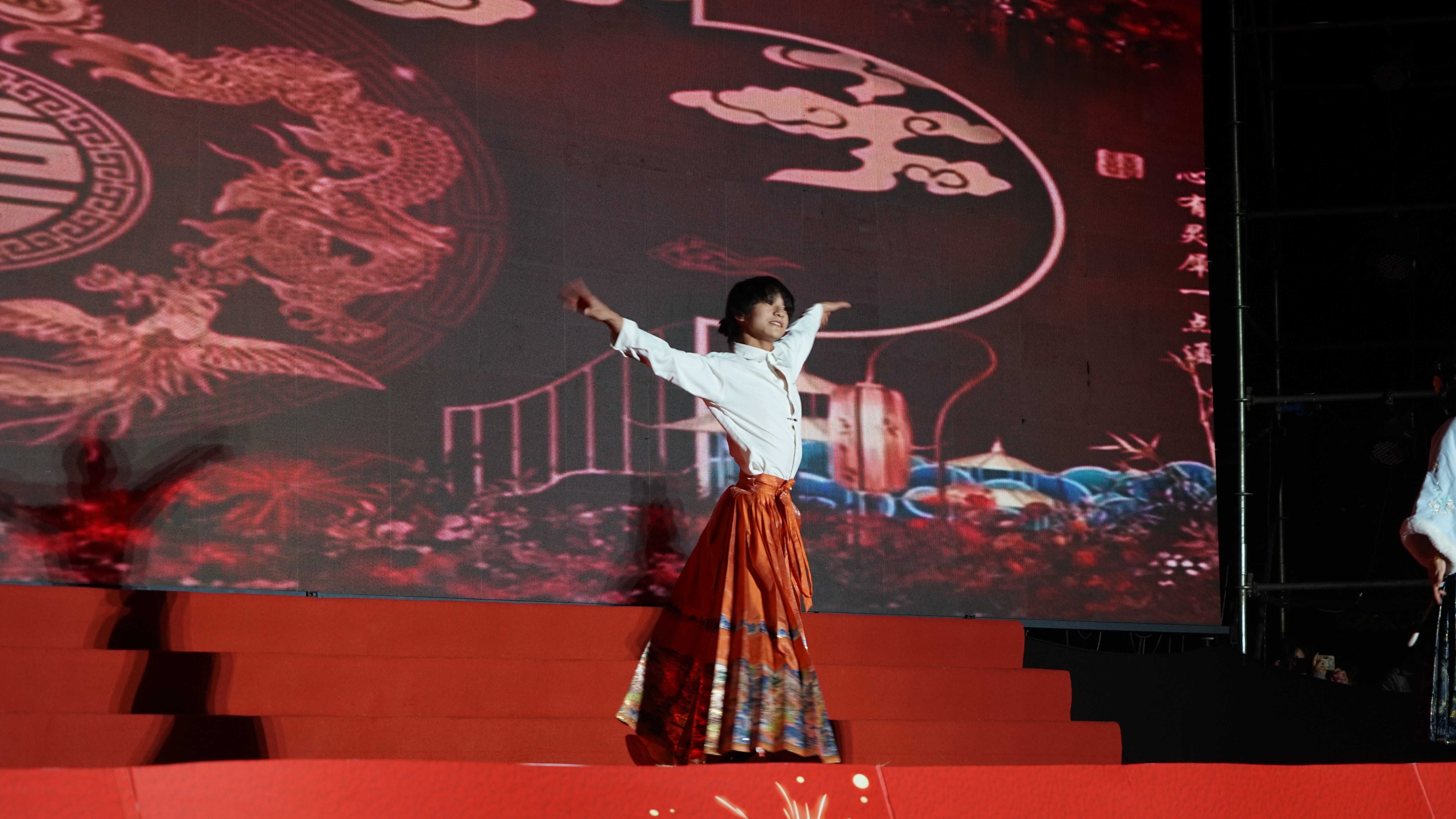 走秀《华夏霓裳秀--千年的祈愿》模特们身着华丽汉服,优雅台步仿佛穿越时空,尽显中华传统服饰魅力。