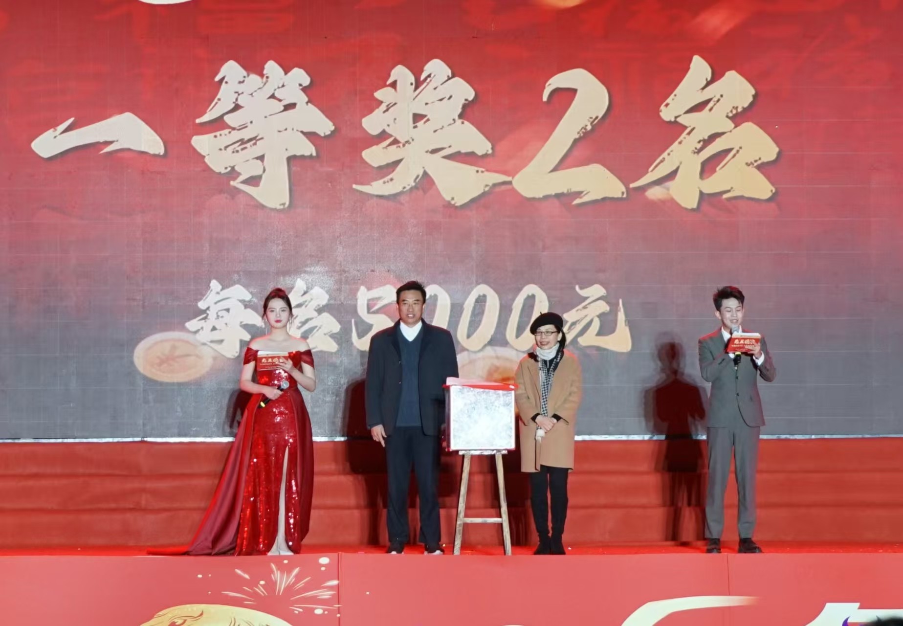 在精彩的歌舞表演后,二等奖的抽取拉开序幕!